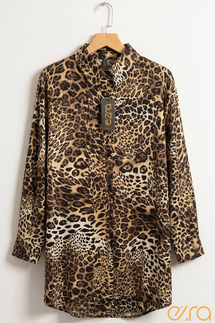 The beauty of this animal print shirt dress is its versatility. Wear it as a standalone mini dress with knee-high boots for a chic fall look, or unbutton it and layer it over a black bodysuit and leather leggings for a fierce, duster-style aesthetic.
